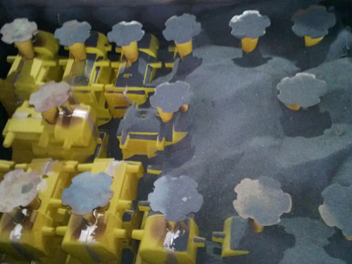 1.Le sable est pré-enduit de résine qui rassemble les grains de sable.